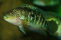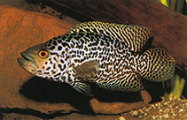 Antes Cichlasoma hedricki, é um dos mais famosos para nós brasileiros: você o conhece como Jack Dempsey. Ilustre, mas também nanico (25 cm) e onívoro. Suas escamas têm iridescência verde e algumas amarelas, porém, existe uma variedade com belíssimas luminescências azuis, que contrastariam muito bem com o amarelo de nosso amigo de cima. As águas de seu habitat tendem a ser turva e pantanosa, em regiões com muita vegetação e de fundo lamoso. Alimenta-se sobre vermes, crustáceos, insetos e peixes.